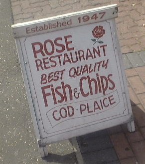 Tottenham High Road. I forget the name of this place and we only went there once. It deserves a special mention though as it had the best phonetically spelt menu ever. It was run by a family of eastern Europeans who spoke hardly any English. The whole family lined up smiling to greet us when we went in, like a scene from 'The Sound of Music' and then waited on us in their entirety, as if we were honoured guests, visiting them at home. The menu was obviously based on someone asking for help in writing the names of dishes, who being hard of hearing had completely misunderstood what he was being asked to spell. Hence 'One egg, chips, peas' had become 'One-eyed gypsy'.